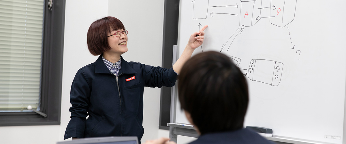 入社後は大小様々なゲームタイトルのデバッグに携わり、立場もアルバイトから正社員に。今は新しくできたスマートデバイスグループの正社員(総合職)として、長くゲームソフトチームで培ってきた経験と知識をこのグループでも活かすべく業務にあたっています。 -